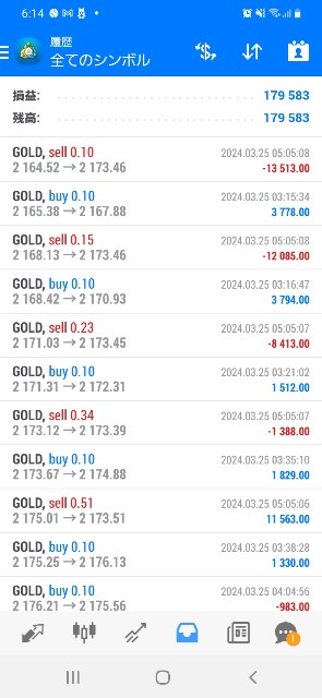 損益が+179,583円となりました。