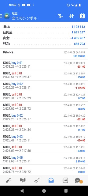 損益が+1,103,313円となりました。