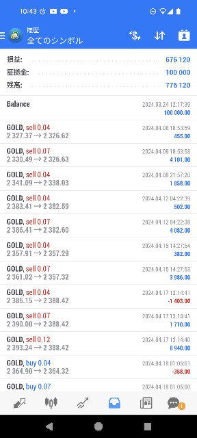 損益が+676,120円となりました。